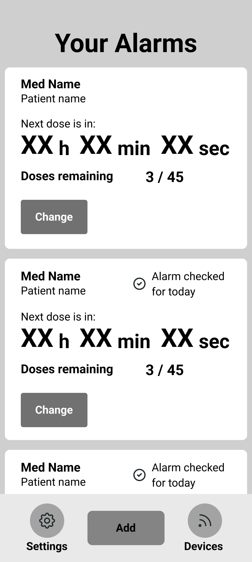 How might we design an app that allows people with hearing disabilities to schedule alarms and keep track of the medications they might need to take on a constant basis, while synchronizing with other smart devices in order to raise the probability of the user, or a member of their community to notice said alarms?
